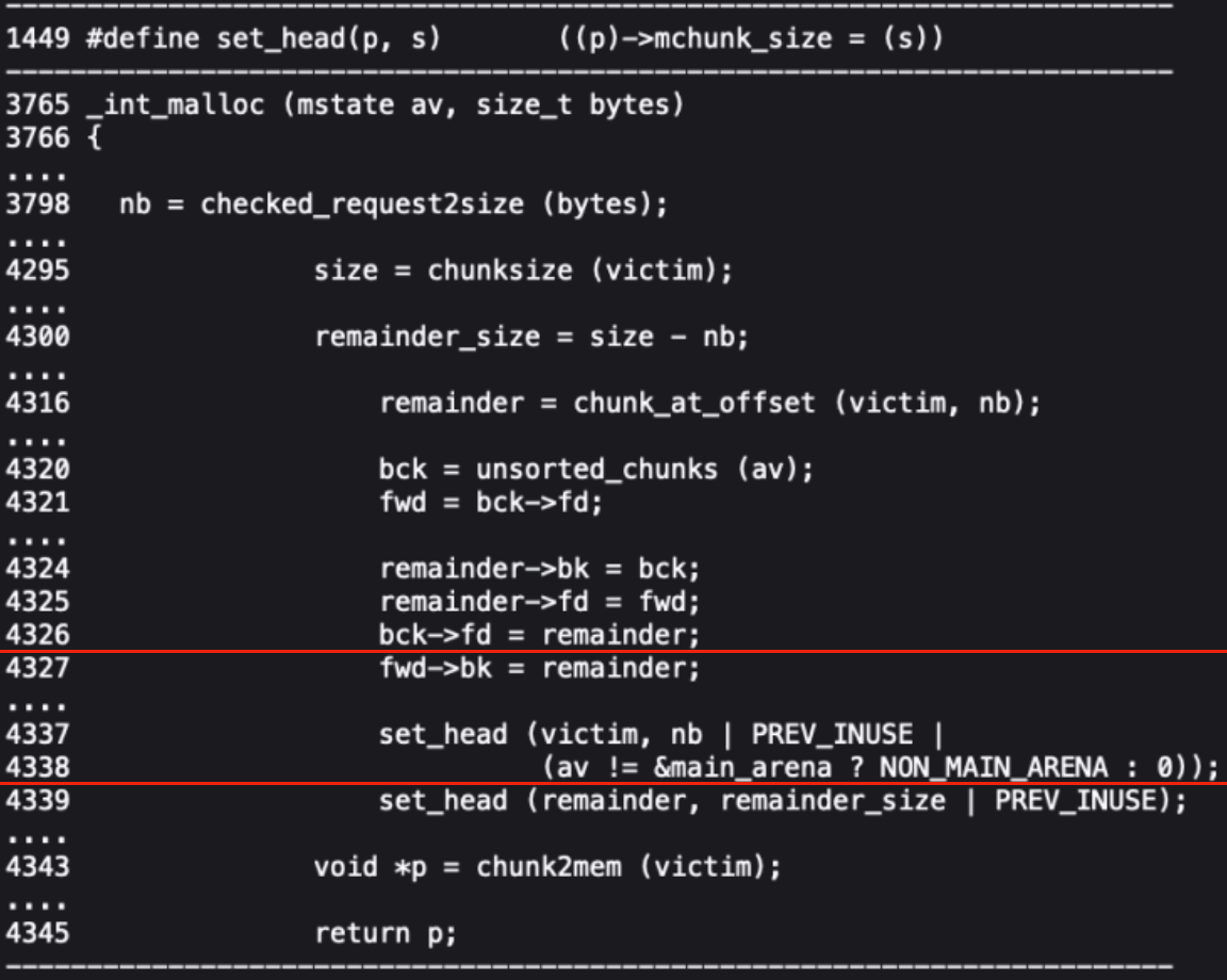 Here attackers face another challenge — they need to intercept the execution of malloc() inside syslog() between lines 4327 and 4339 of the source code, when malloc() has allocated memory but not yet moved it.